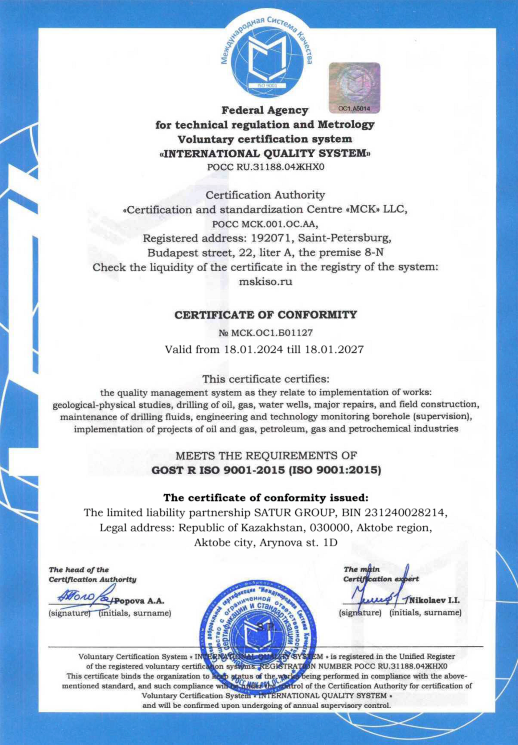 Achieving success in construction of technologically of technologically complex wells is the result of the engineering approach and human resources of the "SATUR GROUP", as well as the application of a wide range of services accompanying drilling:
